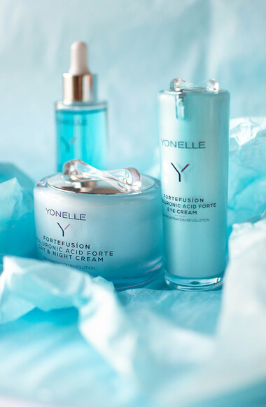 - retinol – pomaga w walce ze zmarszczkami i poprawia teksturę skóry. Ważna jest nie tylko jego ilość w kosmetyku, ale również forma. Retinol w kosmetykach Yonelle ma unikalną postać NANODYSKÓW™, które pokonują aż 14 warstw naskórka, zwiększając wchłanianie retinolu nawet o 340% (badania aparaturowe);