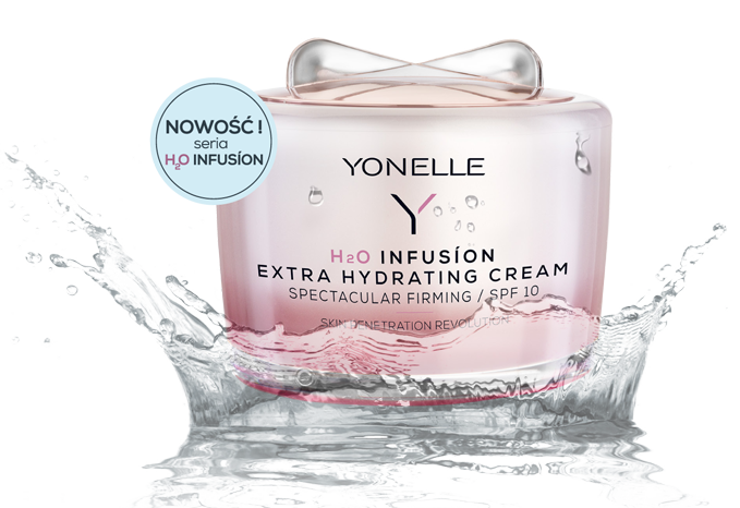 In the H2O INFUSION line, the YONELLE brand applied the unusually effective, innovative WATER TRAP mechanism which allows water molecules to be trapped in the skin with no way out. It is formed from 6 different forms of hyaluronic acid and 11 bioactive ingredients. Each time the cosmetic is applied, BILLIONS OF NANODISCSTM, revolutionary carriers smaller than intercellular spaces, introduce up to the 14th layer of the epidermis the active ingredients, which under normal conditions cannot penetrate the skin. They catch the water molecules at a great depth and keep them in the epidermis.