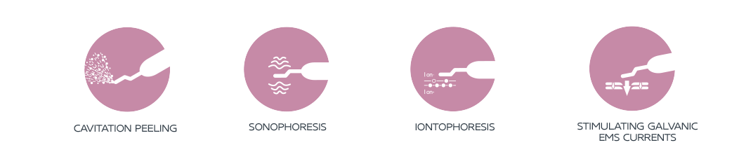Four techniques used in professional cosmetic procedures, applying ultrasound and galvanic current, provide radical effects: