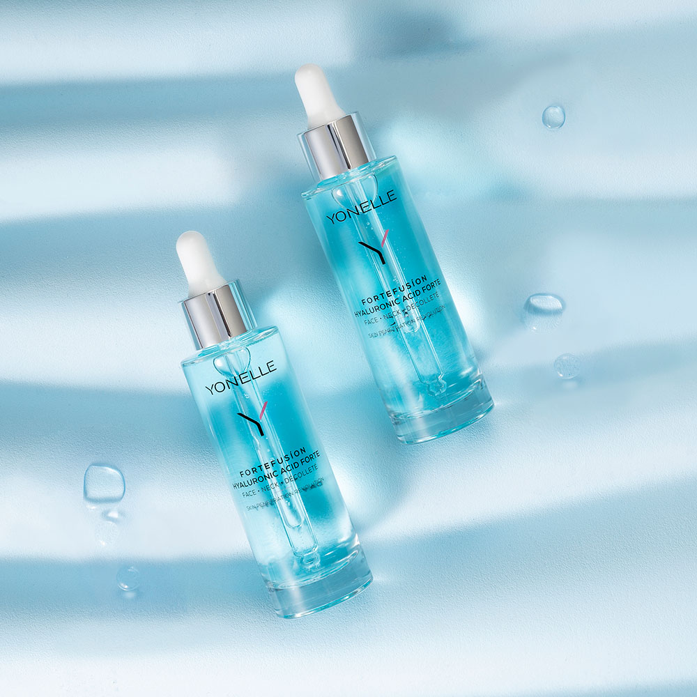 FORTE HIALURONSAV arcra, nyakra és dekoltázsra. Szuperhidratáló bombaként működik. Fokozza az ápoló krémek hidratáló hatását. Használható krém alá, de önálló hidratáló kozmetikumként is.