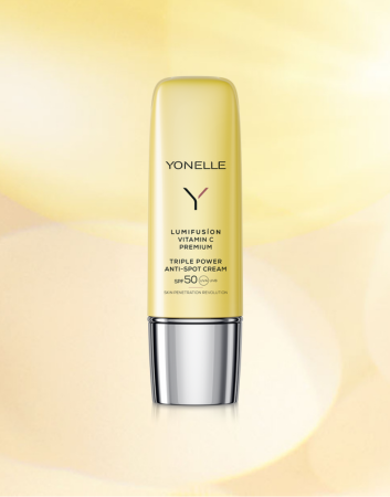 POTRÓJNIE AKTYWNY KREM SPF50 PRZECIW PRZEBARWIENIOM Z WITAMINĄ C PREMIUM