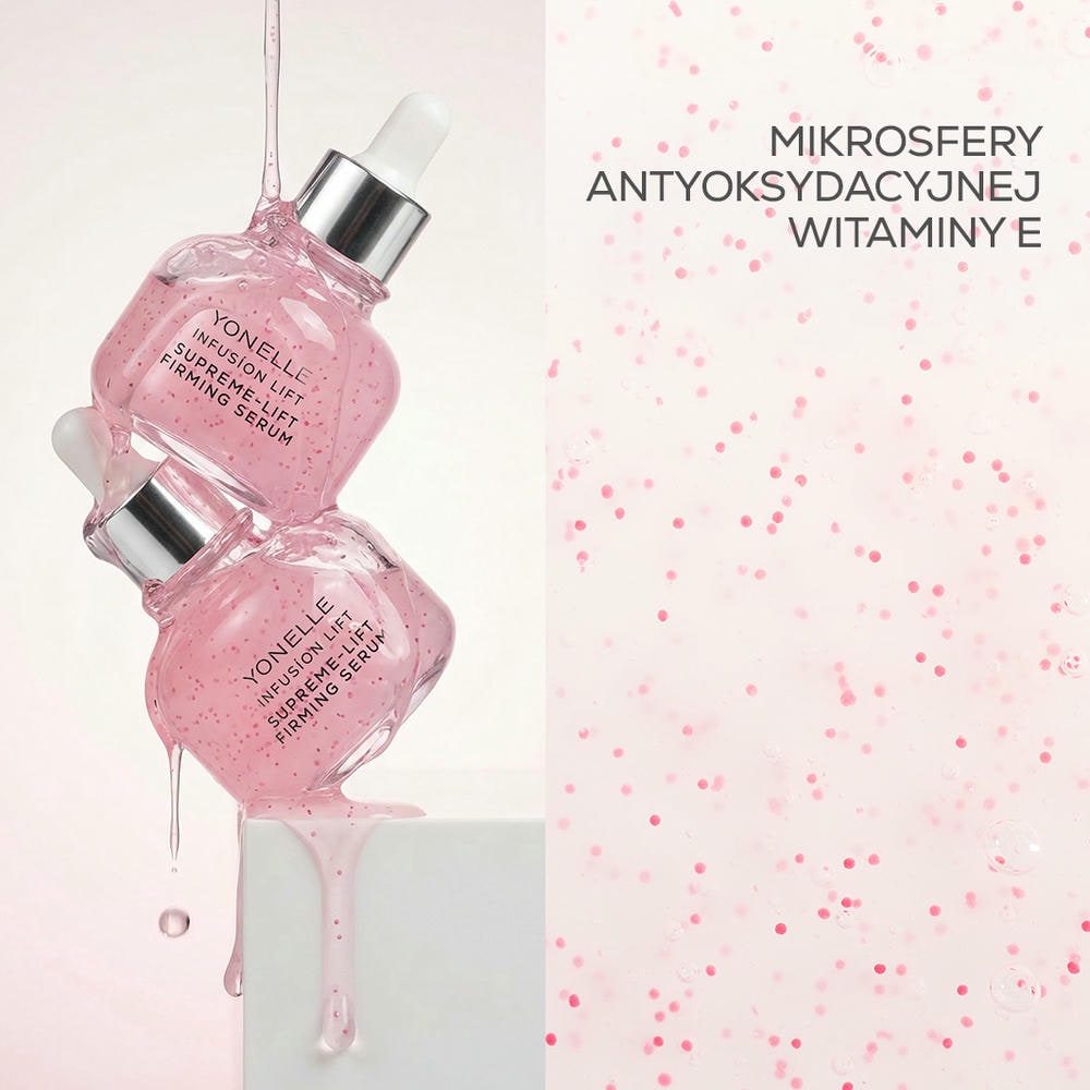 Aksamitna konsystencja z różowymi mikrosferami antyoksydacyjnej witaminy E łączy skuteczność skoncentrowanej terapii z wyrafinowaną sensoryką i jakością aplikacyjną właściwymi dla kosmetyków klasy premium.
