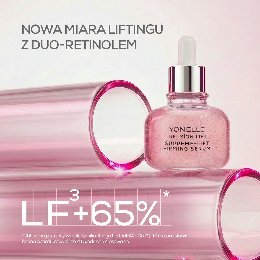 Zaawansowane serum liftingująco-przeciwzmarszczkowe z DUO-RETINOLEM do pielęgnacji twarzy, szyi i dekoltu. Przeznaczone do skóry dojrzałej, również wrażliwej, w szczególności wiotkiej, o cienkiej, „pergaminowej” strukturze, ze zmarszczkami. Zapewnia skoncentrowany impuls liftingu, który intensyfikuje działanie pielęgnacji i wzmacnia jej efekty na każdym etapie. Łączy silną stymulację kolagenu z działaniem liftingującym, przy zachowaniu wysokiej tolerancji.