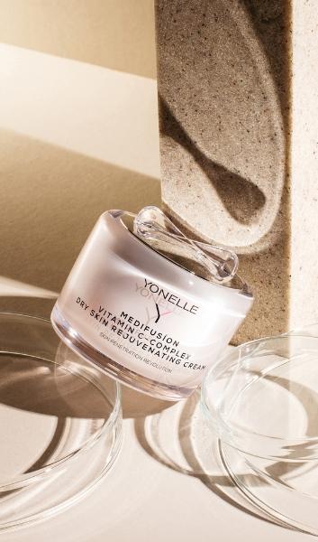 By dotarła jak najgłębiej, nasze laboratorium opracowało Witaminę C- Complex, co oznacza, iż zamknięto ją w nośnikach: NANODYSKACH™ oraz połączono z witaminą A oraz E i B5. W postaci witaminowej bomby, trafia głęboko w skórę by tam rozprawić się z fotostarzeniem, wolnymi rodnikami i pobudzić metabolizm. MEDIFUSION KREM Z WITAMINĄ C – COMPLEX ODMŁADZAJĄCY WYGLĄD CERY SUCHEJ jest oparty na działaniu tego kompleksu i dzięki niemu, szybko przynosi ulgę dojrzałej, suchej oraz bardzo suchej skórze. Formuła naprawia uszkodzenia, uszczelnia skórę zatrzymując w niej wysoki poziom wilgoci oraz tuż po pierwszym zastosowaniu daje efekt „drugiej skóry”.